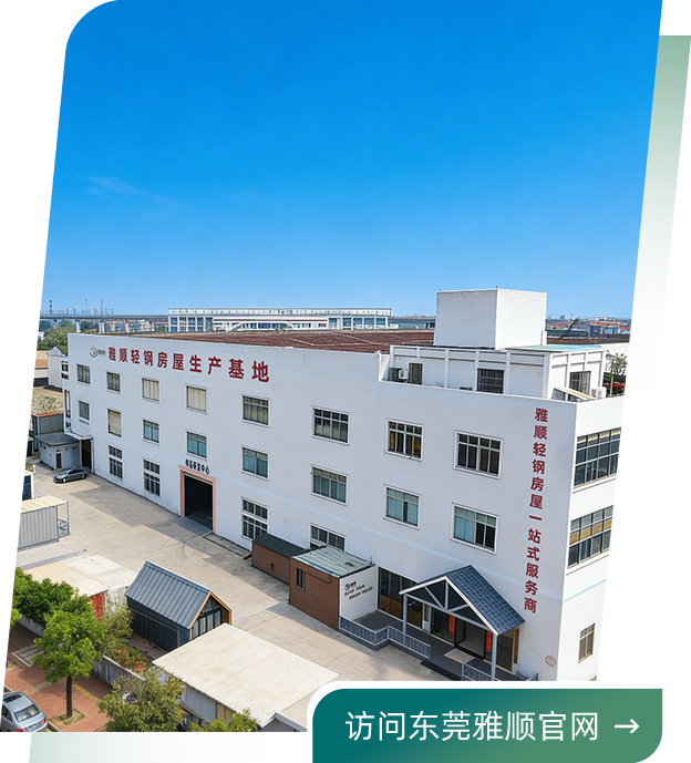东莞市雅顺轻钢结构有限公司成立于2015年,位于东莞市望牛墩镇,自成立以来一直致力于轻钢结构及相关产品材料的开发与制造。拥有多项集成房屋发明专利,获得了质量管理体系、环境管理体系等认证,并连续多年获评“广东省守合同重信用企业”。2020年起,雅顺先后通过了国家科技型企业、国家高新技术企业认证。
