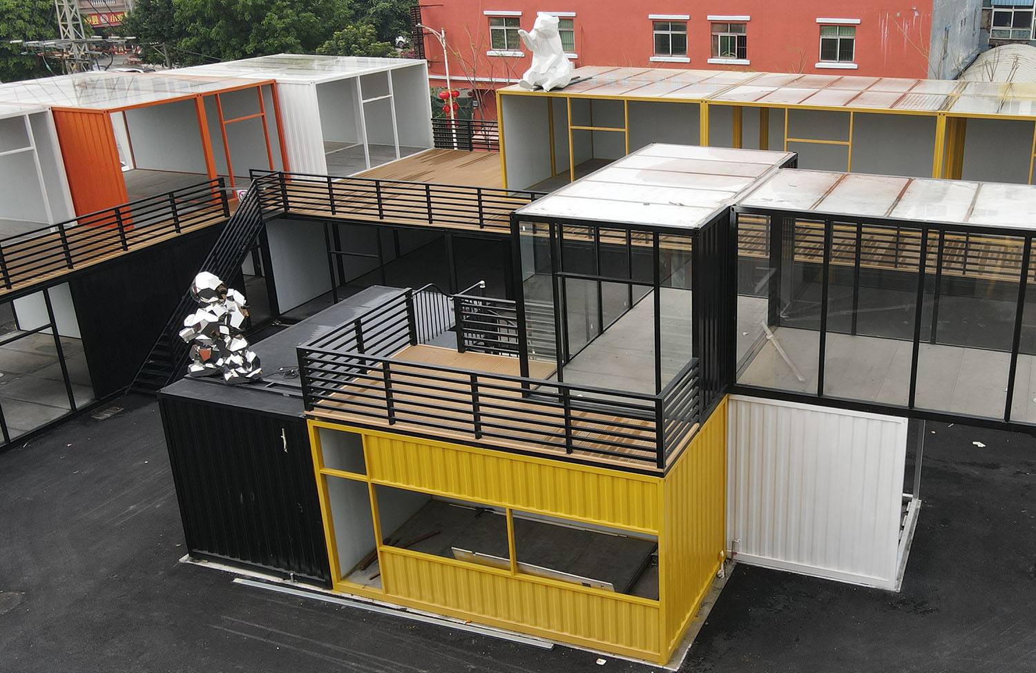 谁说商业空间只能千篇一律?这里直接打破刻板印象!整个街区全由标准集装箱搭建而成,明黄、酷黑、活力橙的色彩碰撞,瞬间中和了金属材质的冷硬感,视觉冲击力直接拉满!