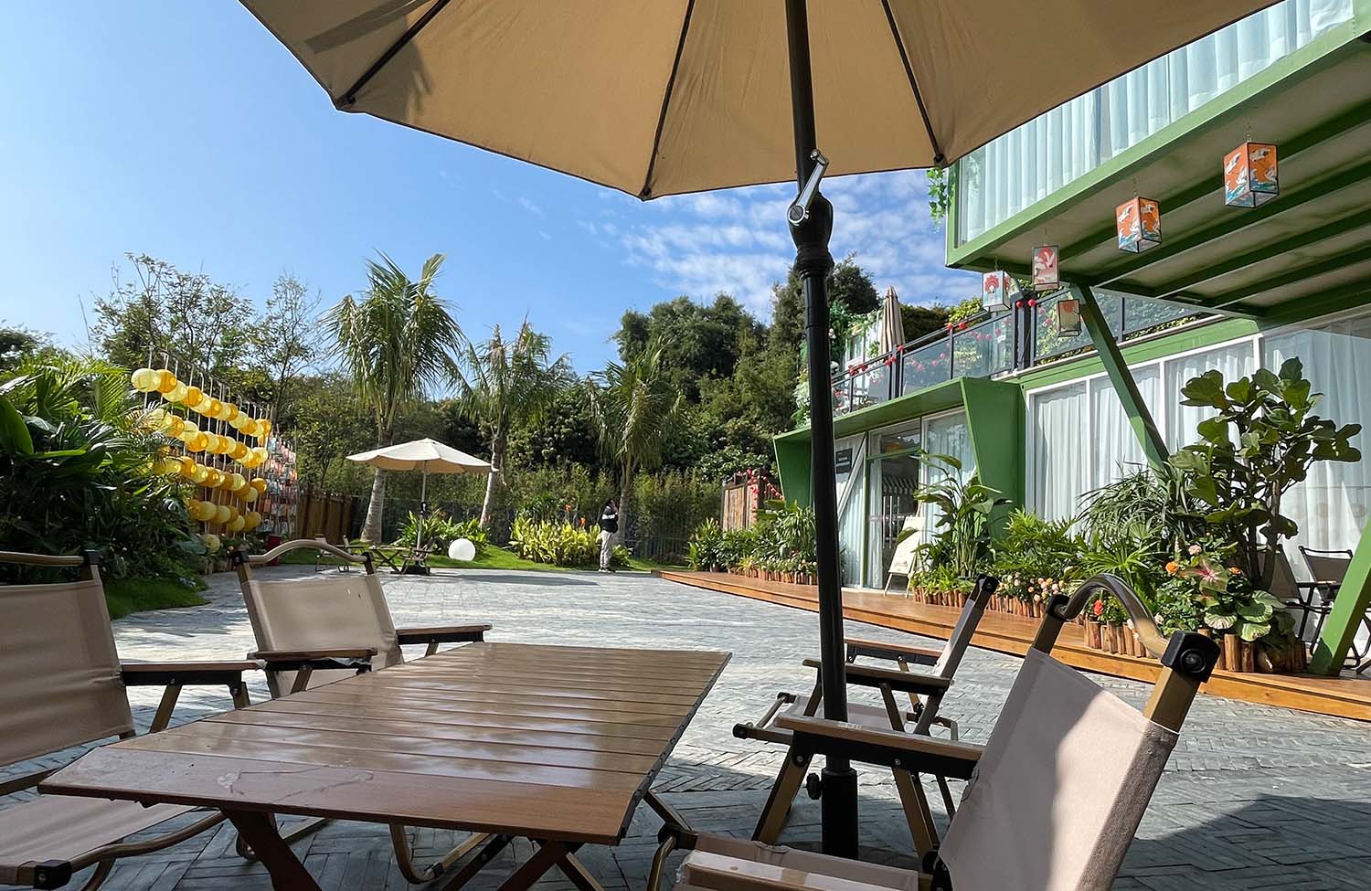 二楼打造了超大观景露台,摆上桌椅就能喝茶、开会、看山景,工作间隙随时放松