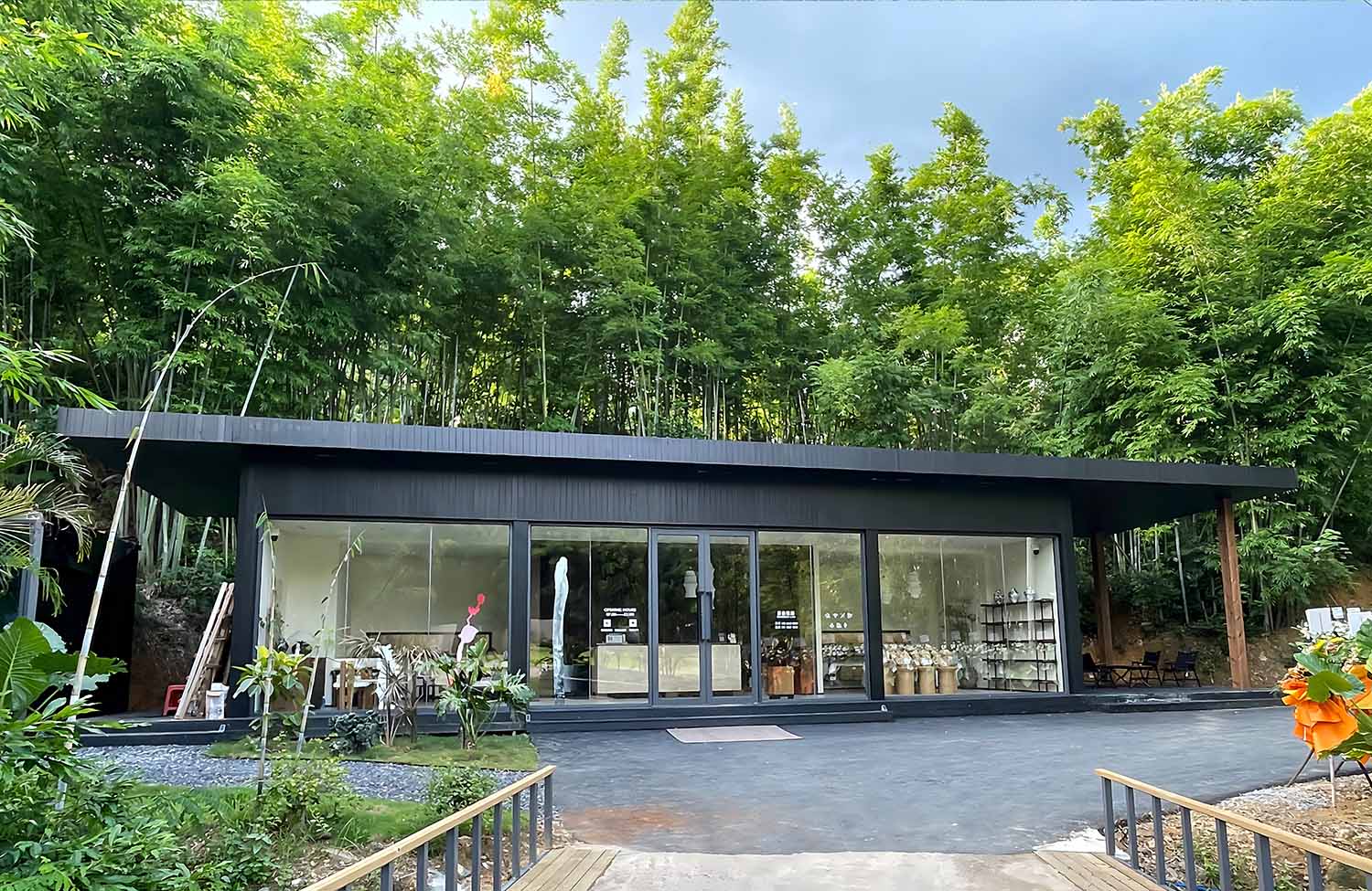 超有设计感的公共区域,黑框玻璃房搭配集装箱式的简约架构,在竹林里格外出片。不管是喝咖啡、看书,还是和朋友聊天,这份惬意都离不开集装箱定制的巧思设计。