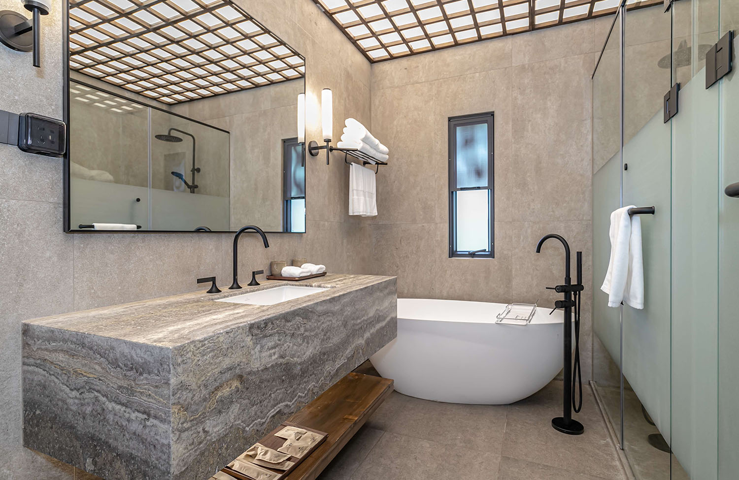 连卫生间都做到了极致!大理石台面、独立浴缸、干湿分离,细节感满满。玩累了泡个热水澡,洗去一身疲惫,幸福感直接拉满!